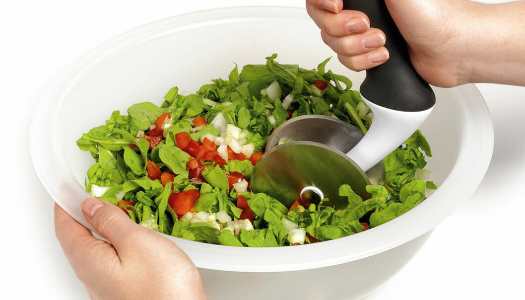 Fyll skålen med dina favoritingredienser och rulla den dubbelsidiga skäraren genom innehållet till önskad storlek. Skålen är krökt så att skärhjulen har optimal kontakt genom hela skålen.