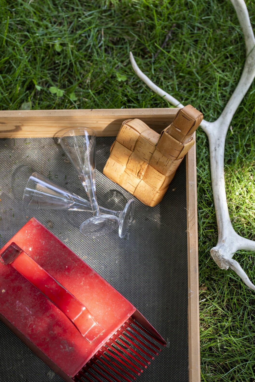 Nu är lingonen här också, så underbart! Vill du plocka mycket är det bra med en bärplockare, och en bärrensare är inte heller dumt att ha. Båda brukar gå att hitta på loppis. Den lilla fickpluntan av näver var för söt för att motstå när den dök upp på en auktion i Medelpad.