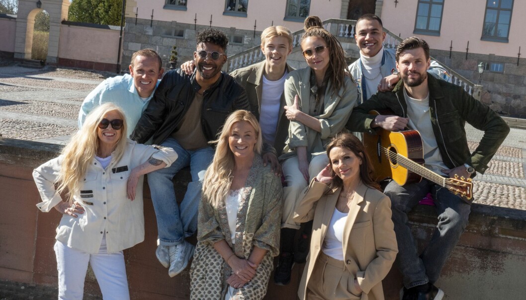 Hela artistgänget som medverkar i Diggilooturnén: Sanne Salomonsen, Måns Möller, John Lundvik, Theoz, Mariette, Liamoo och Robin Bengtsson. Längst fram syns Jessica Andersson och Lena Philipsson.