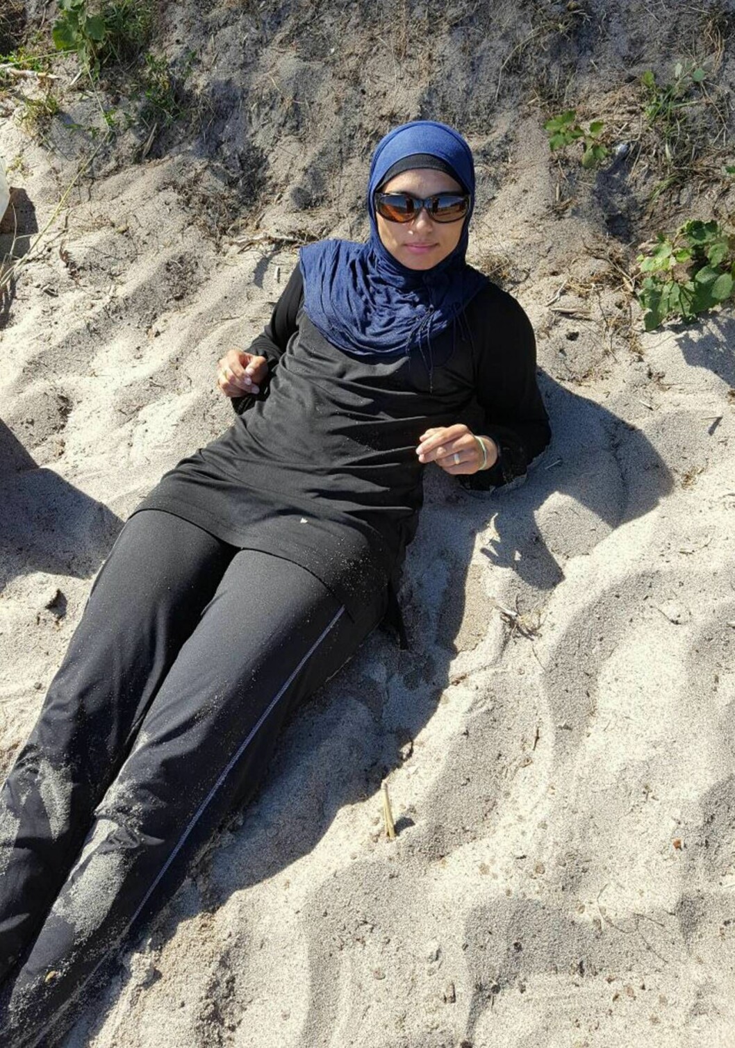 Ibland känner Inaam sig ovälkommen på stranden, för att hon är påklädd. Foto: Privat